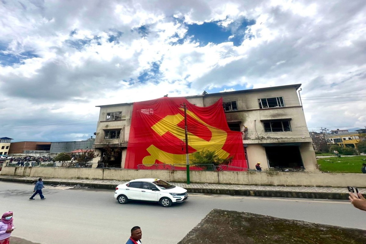 काठमाडौं, ३० भदौ । जेन–जी आन्दोलनका क्रममा अराजक समूहले तोडफोड गरेको ललितपुरको च्यासलस्थित नेकपा (एमाले) पार्टी कार्यालयमा देशकै सबैभन्दा ठूलो झण्डा फहराइएको छ।